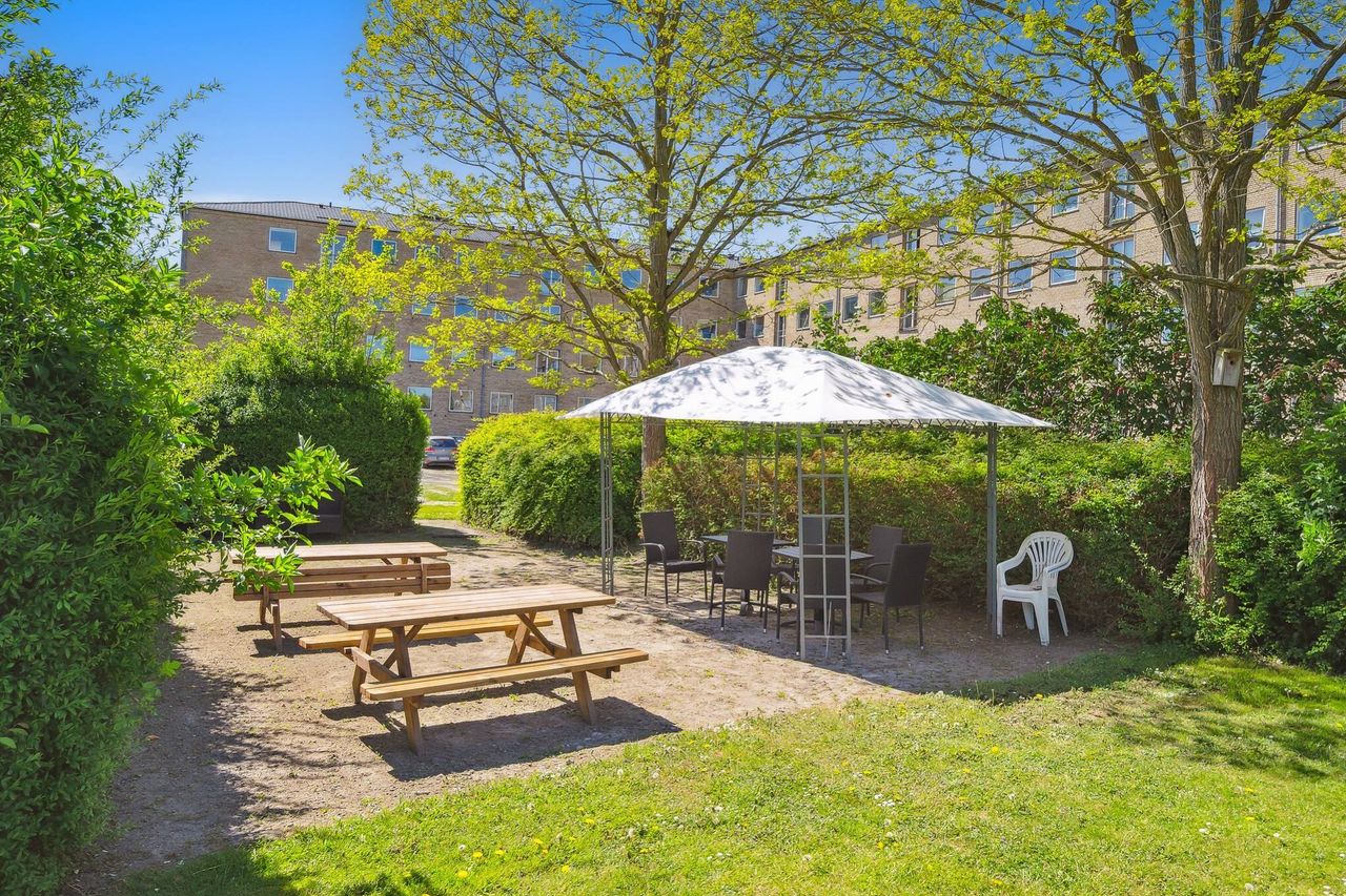 Udenfor er der et grønt område med græsplæne, høje træer samt flere kroge, hvor du kan nyde de rolige omgivelser ved et af de mange bordebænkesæt, mens der også er en legeplads, som børn kan udfolde sig på.