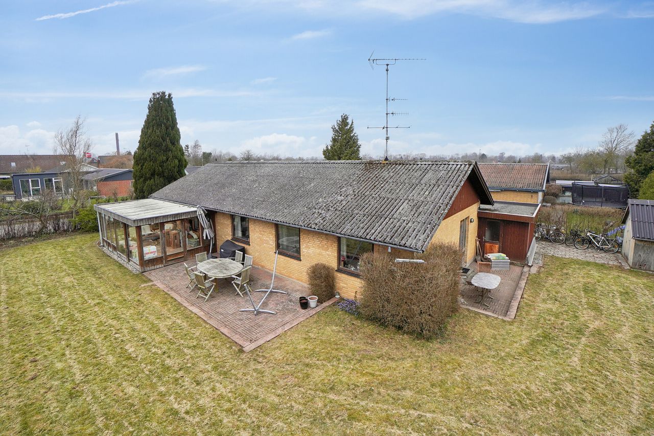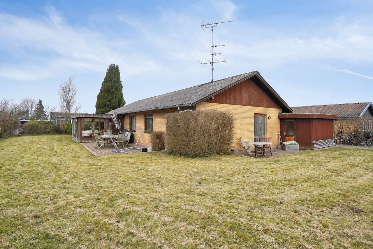 På adressen møder I den solide etplansvilla fra 1964. Til ejendommen hører en integreret garage med rum til et værksted, hvor der er adgang til baghaven. Grunden er overskuelig og anlagt med græs og terrasseområder omkring huset, så der er gode muligheder for udeliv på alle tider af dagen og året.